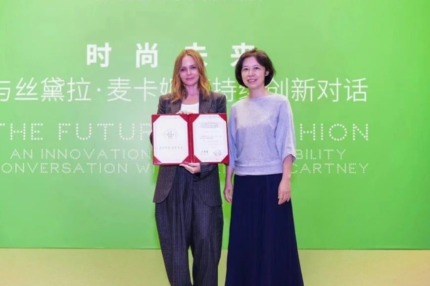 她就是丝黛拉·麦卡妮! 她作为知名时尚设计师、环保主义者、可持续发展运动的先锋,曾担任多个国际知名品牌设计总监。2001年,创立英国高端生活方式品牌Stella McCartney,致力于探索提升时尚产业可持续发展可能性的创新方案,在所设计的产品中不使用皮革、毛皮或羽毛。她在2023年荣获大英帝国司令勋章(CBE),以表彰她对时尚行业和可持续发展做出的杰出贡献。 真是一段羡煞旁人的经历!话不多说,我们来一起走入会议现场吧!