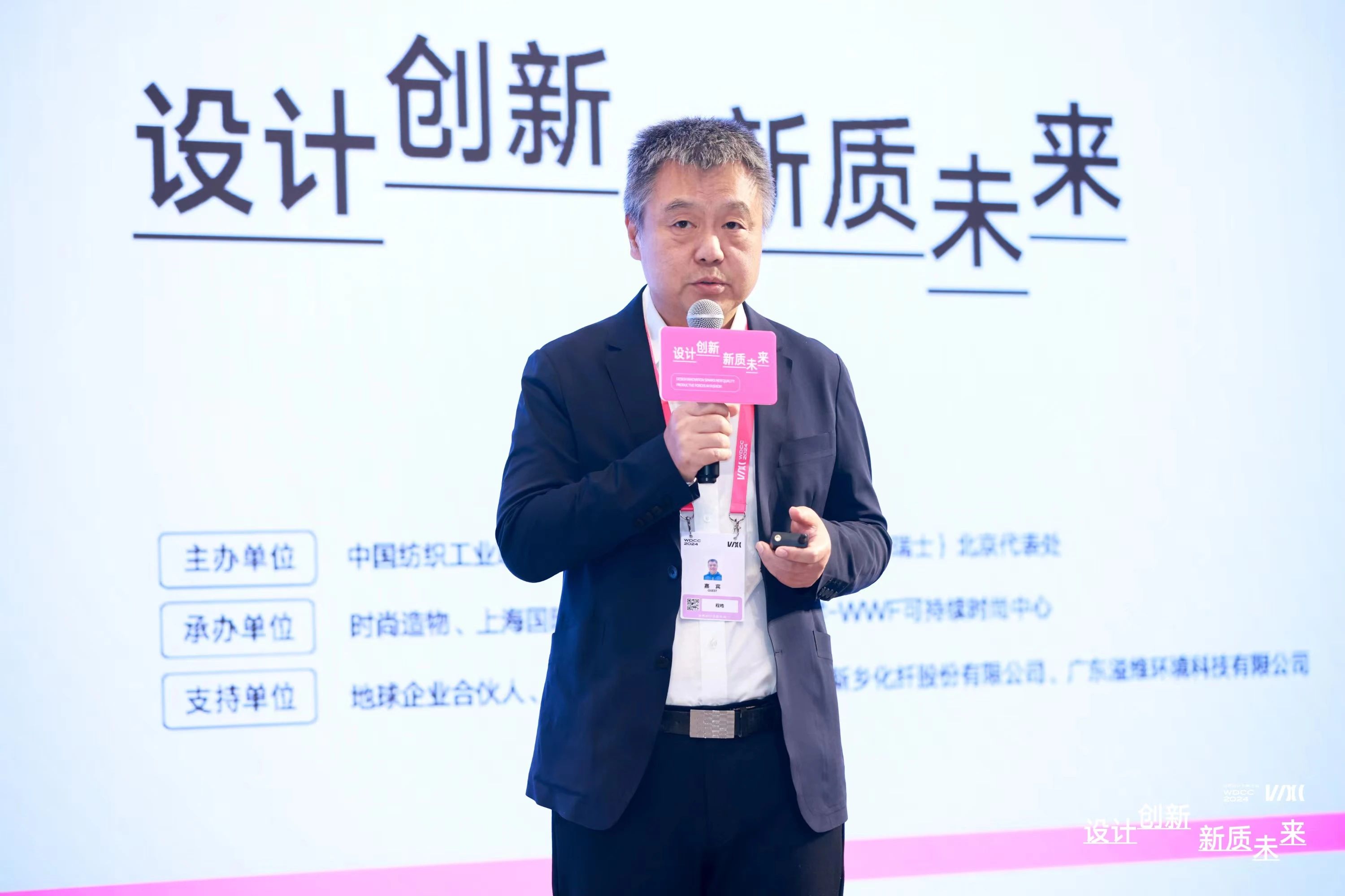 (设计创新激发时尚新质生产力论坛) 大会期间,“设计创新,新质未来”设计创新激发时尚新质生产力论坛同期举行。论坛由中国纺织工业联合会、东华大学、世界自然基金会(瑞士)北京代表处(WWF)主办,时尚造物、上海国际时尚创意学院、东华大学-WWF可持续时尚中心共同承办。 东华大学校长、中国工程院院士俞建勇教授出席会议并致辞,他指出:“可持续发展是重要的时代命题和未来契约,时尚设计大有可为。东华大学始终坚持服务国家重大战略需求和人民对美好生活的向往,在推进可持续发展中奋发有为。希望政府、社会、业界增加对可持续时尚的关注与思考,加快推进绿色、创新、繁荣的时尚生态体系建设。”
