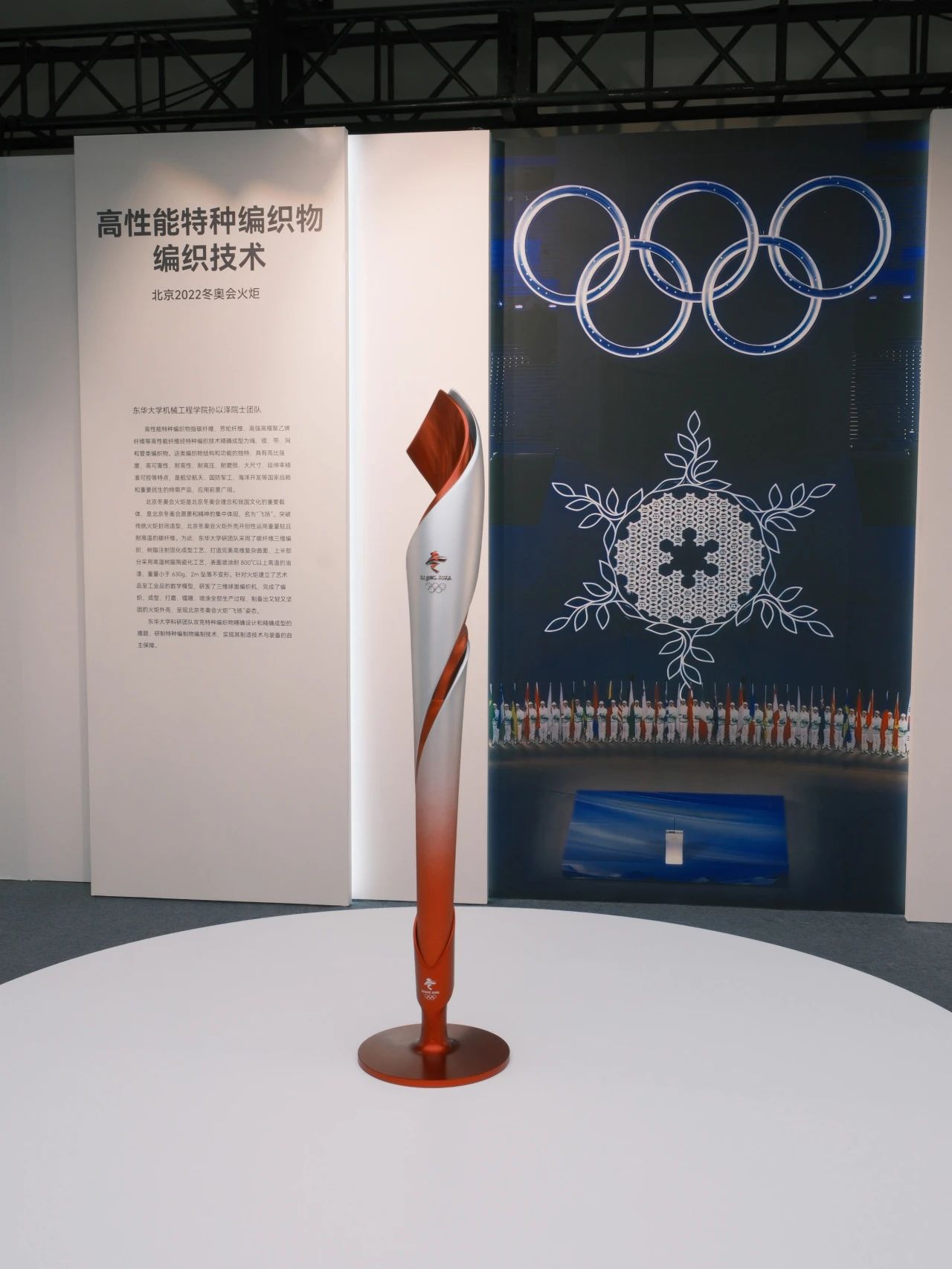 (采用高性能特种编织物编技术制成的北京2022冬奥会火炬 东华大学机械工程学院孙以泽院士科研团队)