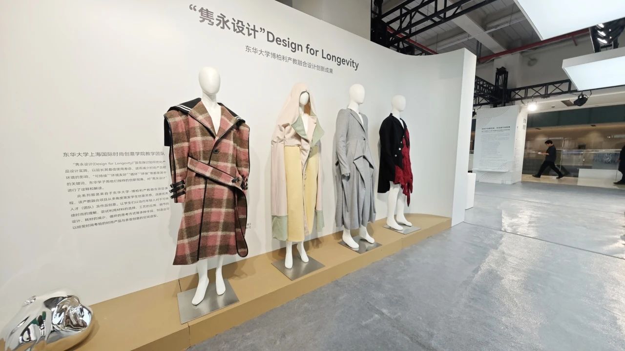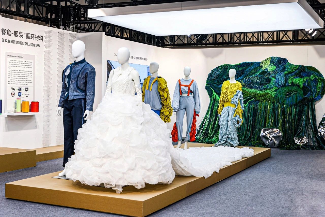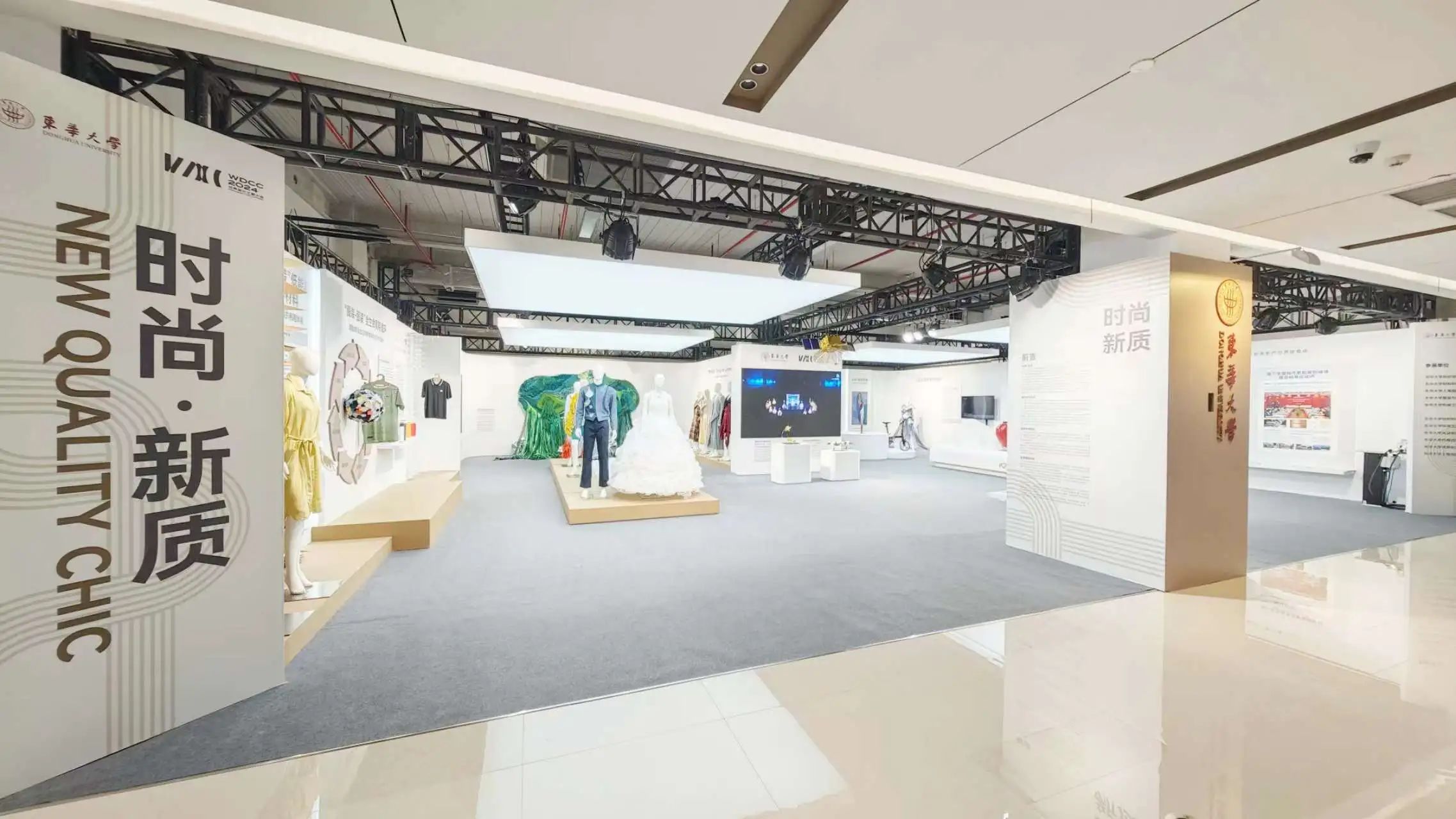 (圆桌对话二;设计创新与消费) 大会主展览活动中由东华大学上海国际时尚创意学院团队策展的“时尚·新质”主题展览同步开展,现场展示了东华大学在纺织、材料、设计创新等领域五十余件展品。展览通过多学科的交叉融合与创新应用,重新定义了时尚设计的内涵,展示了如何通过设计创新推动新质生产力的涌现。东华大学上海国际时尚创意学院团队的巴黎奥运会资格系列赛·上海系列环保服装设计、东华大学博柏利产教融合设计创新成果、一根纱线编织的未来之地回收纱线装置艺术等一系列可持续主题展品一同亮相。此次展览吸引了众多海内外观众参观,受到央视新闻联播等多家媒体报道。