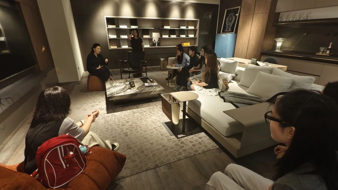 师生们得以亲临企业一线,近距离观察不同规模、各具特色的设计机构如何运作。在软装公司,同学们深入了解了从方案构思、材料选配到最终呈现的全流程,观摩了专业的陈列设计与空间规划技巧;在创意设计工作室,则与设计师们就市场趋势、客户需求、创意落地以及产品开发等核心议题展开了富有深度的交流与探讨。