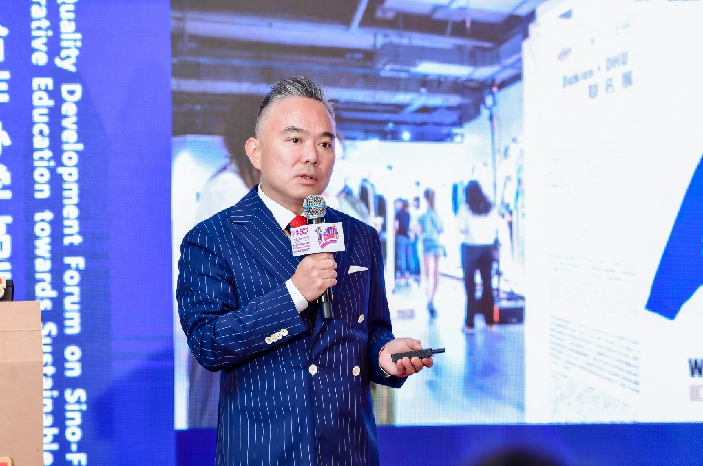 (李峻主旨演讲) 上海国际时尚创意学院院长李峻分享了学院围绕联合国可持续发展目标及国家重大战略的中外合作办学实践。他谈到“积极探索可持续发展路径,发挥设计学科的创造性潜力,建设更美好的世界是学院开展可持续设计教学的目标”。学院将进一步遵循社会、环境、经济三重可持续发展的原则,积极推动可持续设计创新产教融合。