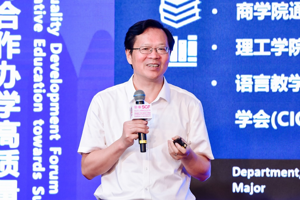 (方军主旨演讲) 方军在分享中就中外合作办学发展现状、发展特点、发展方向进行了全面细致的介绍。“人才培养始终是中外合作办学的主线。”聚焦中外合作办学的人才培养,方军谈到,“合作办学的特点和优势就是学校教育的中西融通”。