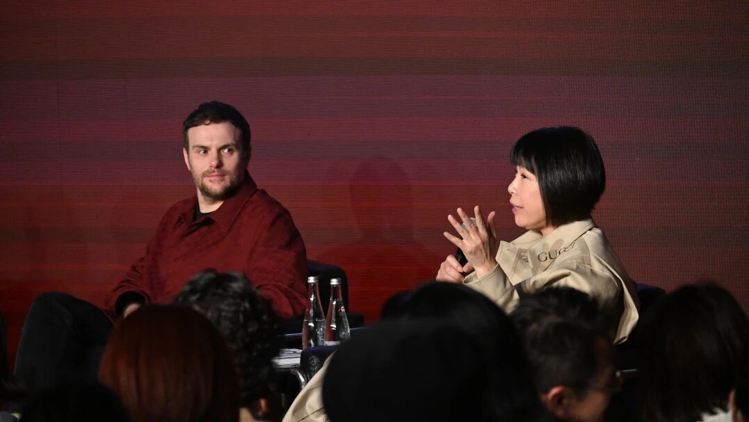 (上海外滩美术馆艺术总监 朱筱蕤) 接着,Sabato De Sarno 与朱筱蕤分享了关于《Gucci Prospettive:Shanghai Ancora》艺术书的创作。 朱筱蕤谈到她的家乡——上海,面对Sabato De Sarno眼中的上海,她很惊喜Sabato De Sarno能注意到上海这座国际化大都市的细节剪影,她表示在他的设计中也能看到像这样的细腻之处。 “简单的事情是最难实现的。如果你谈论颜色,哲学家就会谈论颜色。当你决定做基本的、简单的决定时,这是最勇敢的。”朱筱蕤说。