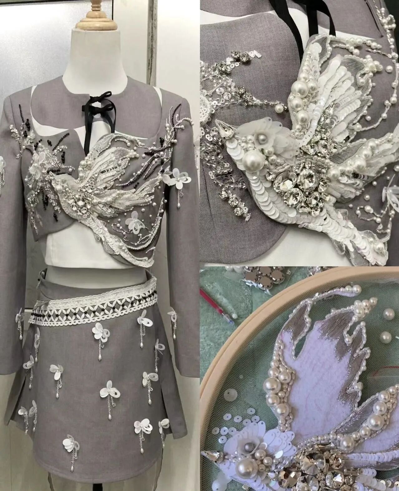 入行初期在第一家女装公司的经历对我帮助很大。当时我不仅担任设计师,还负责对接明星造型师进行服装借调与资源置换工作,这让我积累了大量艺人经纪团队资源。这段经历为我后续独立发展奠定了基础,离职后得以接触到更多有定制需求的艺人。在为不同明星设计服装时,我发现每位艺人的风格差异很大,从歌手到演员都有独特需求。我们的设计流程通常是:首先系统研究艺人过往的穿着案例,分析其个人偏好与适合的风格;再结合造型师对具体活动的主题定位、场合需求等信息进行综合考量;最后通过设计稿与艺人团队保持反复沟通,逐步调整完善方案。
