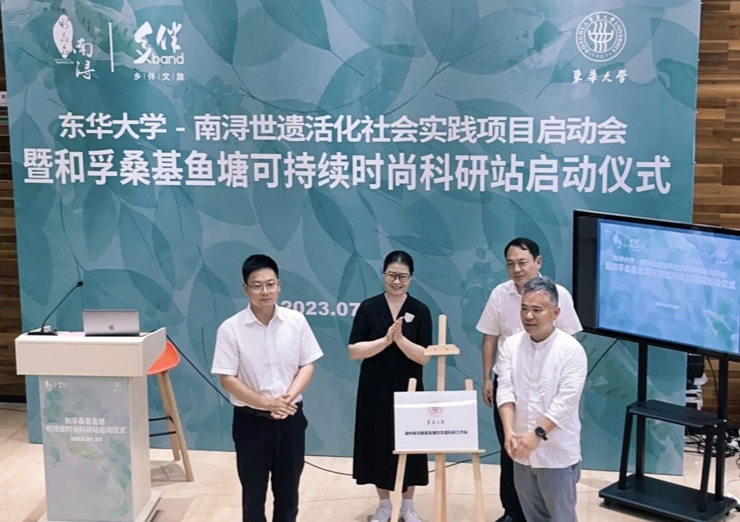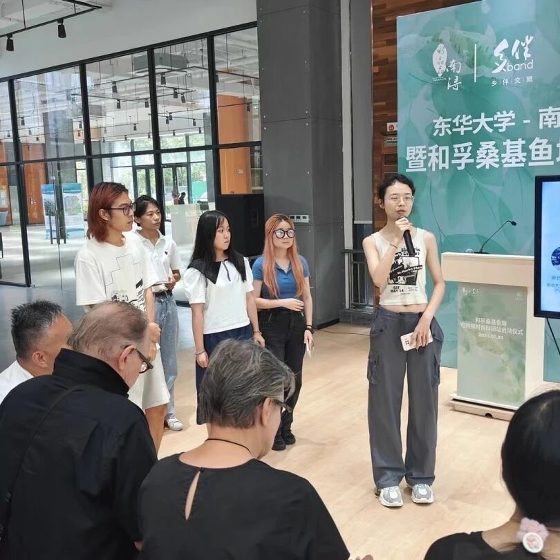 在本次实践项目中,实践团以共建“新生世遗、生机水镇、未来社区”的SDGs示范小镇为目标,将南浔政府、世界自然基金会、乡伴集团和东华大学紧密联系在一起,通过政府、社会组织、企业和高校的多方合作建立「湖州南浔桑基鱼塘世农遗科研工作站」,并开展东华大学X南浔世遗活化社会实践项目。