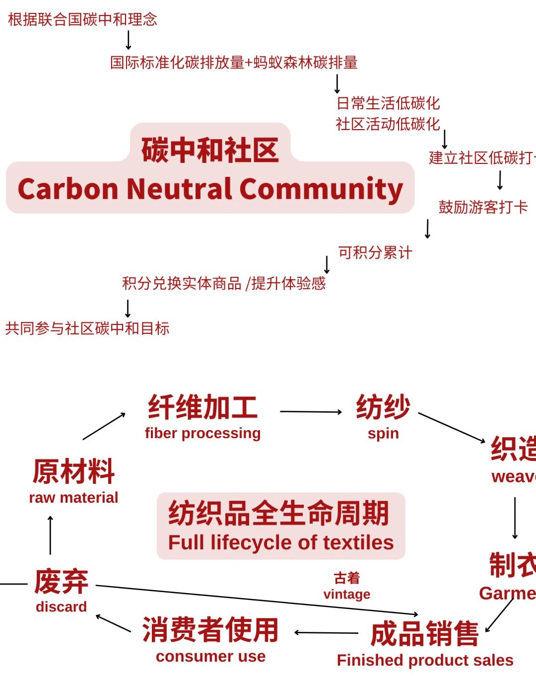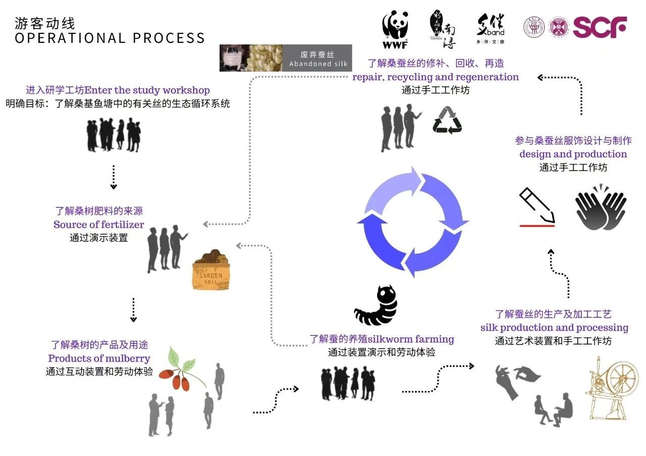 在针对该地区的可持续社区建设上,我们融合了“低碳”这个极具社会责任感的话题于整个研学项目中。在这个宏观概念展开的同时,我们深度分析了桑基鱼塘副产品“辑里湖丝”的发展情况,将其与低碳时尚话题相结合,倡导“湖丝消费”即是“低碳消费”这一新营销理念,也通过产品设计研发,促进低碳共创研学室内外结合发展。