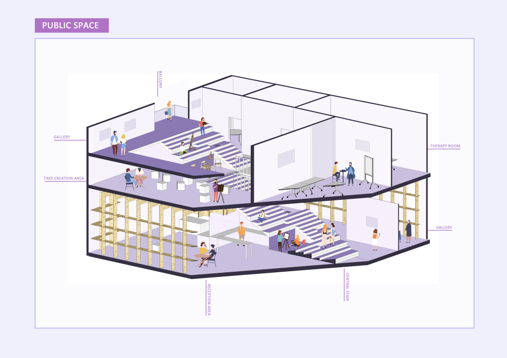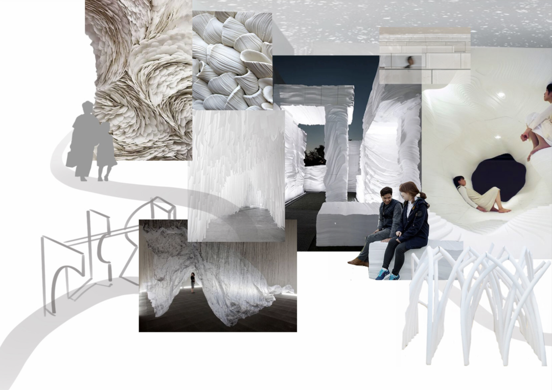 以下是来自张欣怡学姐的作品分享~这个项目是改造一个艺术绘画疗愈中心,老师会让我们在有限的时间进行场景collage,也能够最大程度地激发学生对于这个项目的第一感知。
