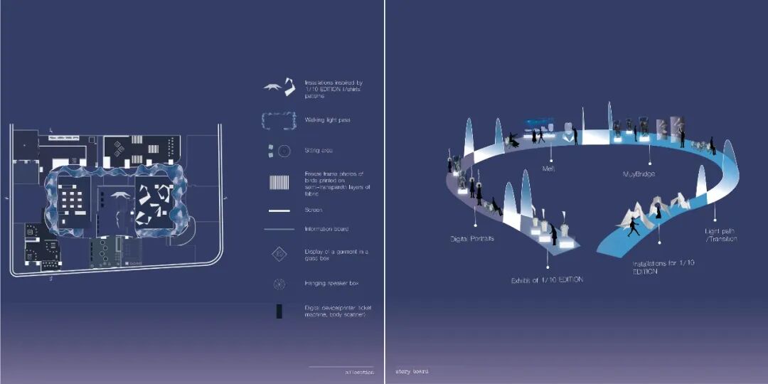设计师的话:这是为一个服装品牌的T恤发行做的叙事展览设计。目的是通过将访问者沉浸在一个双层空间中来呈现这个品牌的故事,其中子图是作为揭示设计师动机和灵感本质的表达手段。
