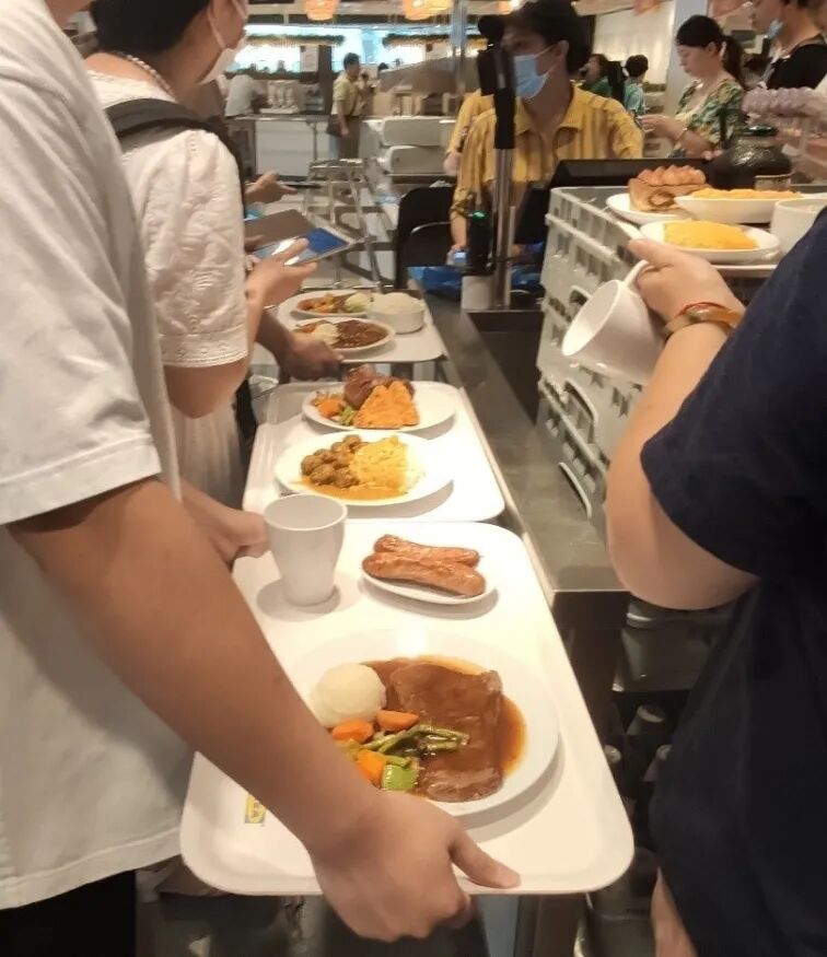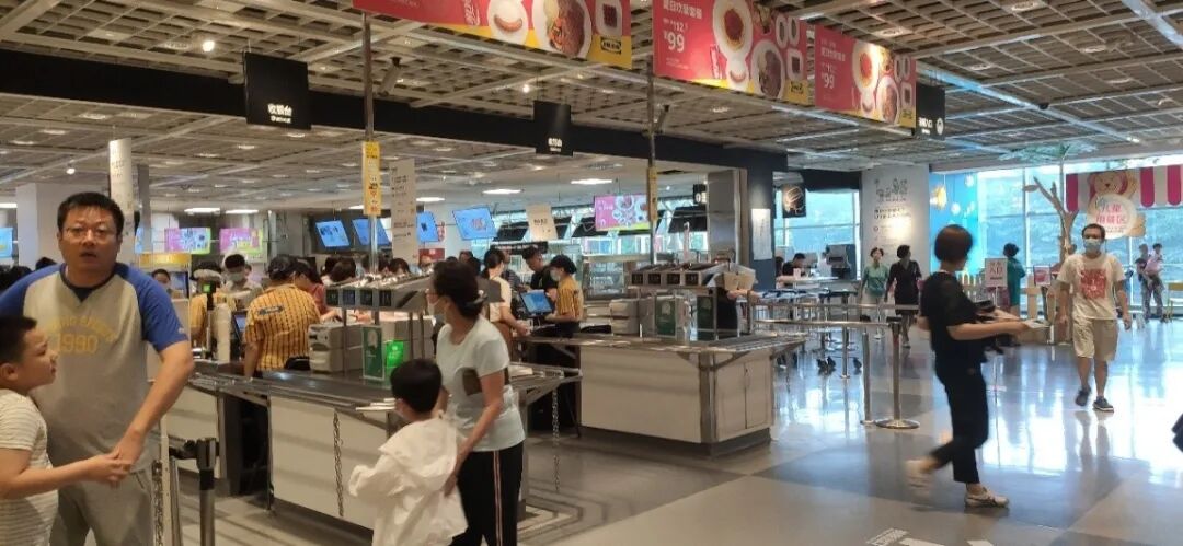 组里的小伙伴有注意到商场超市里的餐桌之间的间隔偏近,以及宜家内对于一些抱枕等小物件设置隔离带过于简易,没有起到效果,为此大家感到略微忧心。